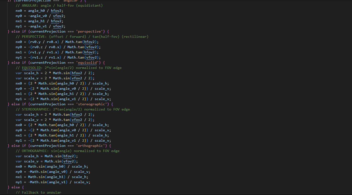Nonlinear FOV mapping to display plane